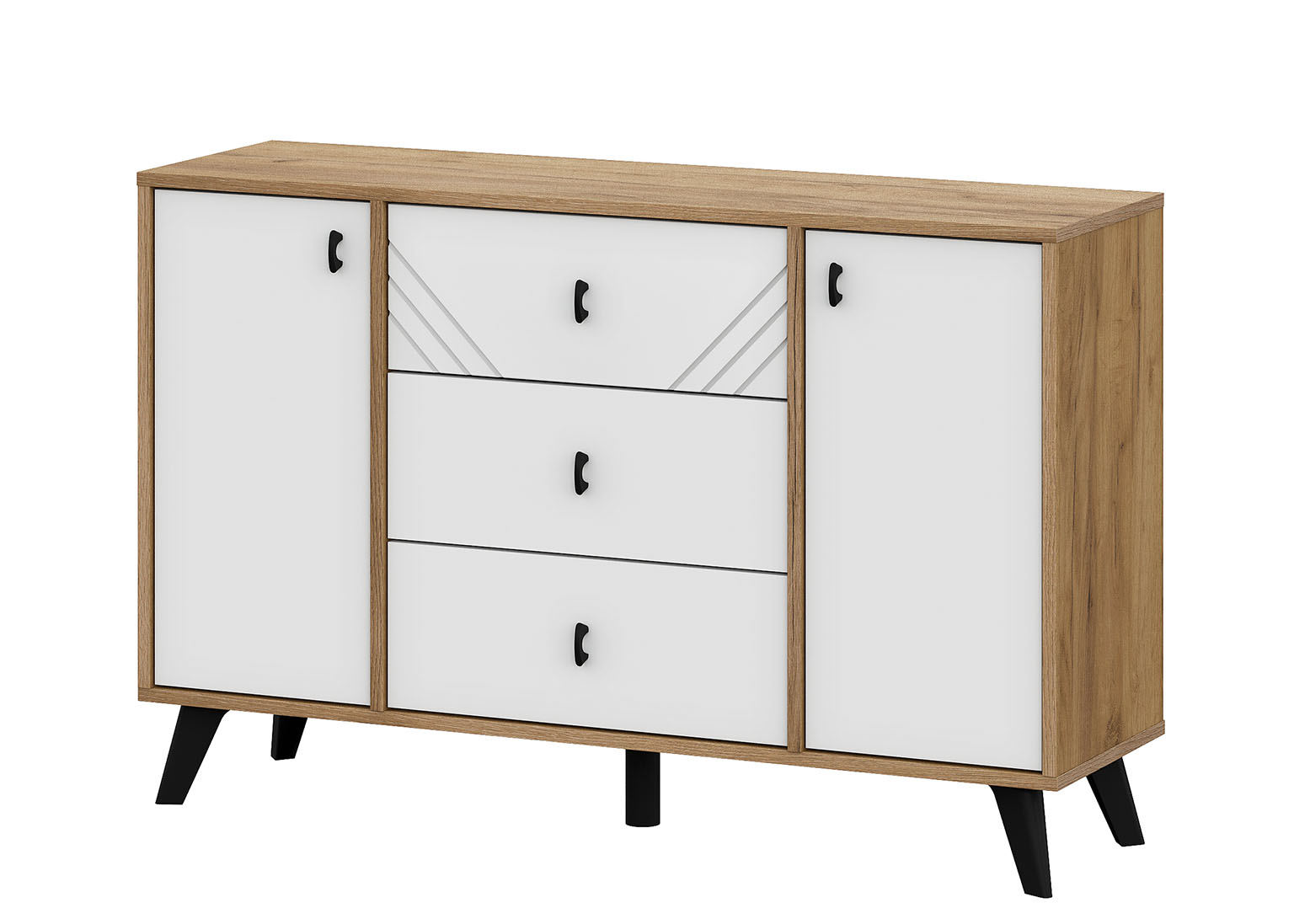 МС "Байкал" Комод 3 ящика двухстворчатый Дуб Золотой/Белый матовый МР